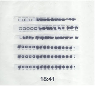 bueno...aqui sigo registrando mis dias, en diferentes momentos de el, son de las ultimas que e hecho, aun no tngo totalmente claro q tipografia voy a utilizar para el registro de el dia y la hora y etc(en anteriores entradas aqui en el blog hablaba d ello)..q cada pieza lleva. La info que posee cada pieza significa por ejemplo: (L)dia, (22:09)hora,(JUN)mes, (CCS)caracas, (VAR)vargas.